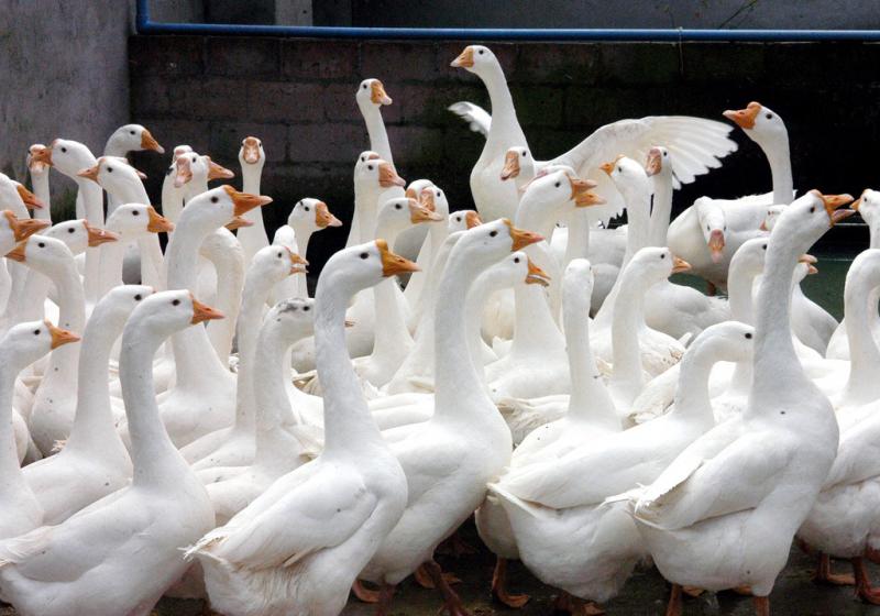 Songhua river white goose is famous for its pure white feathers and abundant down volume. The Songhua river white goose has a small oval body shape. Pure white feather, slender neck with small sarcoma on its head. It has a pharyngeal pouch under its jaw. It has an orange beak, orange feet and webs, blue-gray eyes. The abdomen is tight. Local farmers welcome Songhua river white goose because of its fast-growing, strong adaptability, high egg production, cold resistance, and other advantages. Heilongjiang Institute of Animal Husbandry has set up a goose conservation farm, to protect and improve the Songhua river white goose breed. Moreover, Heilongjiang Academy of Agricultural Sciences has set up a goose breeding engineering center for Songhua river white goose.